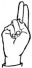 На ћирилици написано ЈЕЗДИМИР ЛЕВИЧАНИН састоји се из 17 слова [?]. Исписано ћириличном једноручном азбуком за глувонеме: